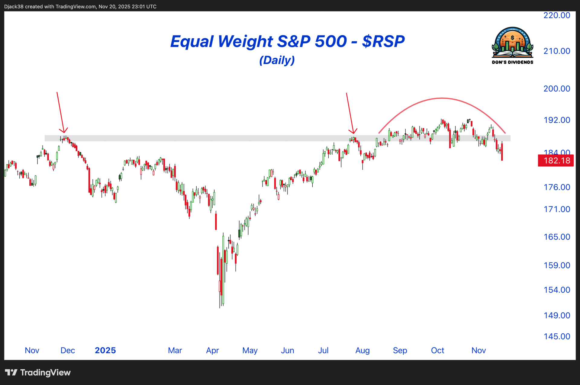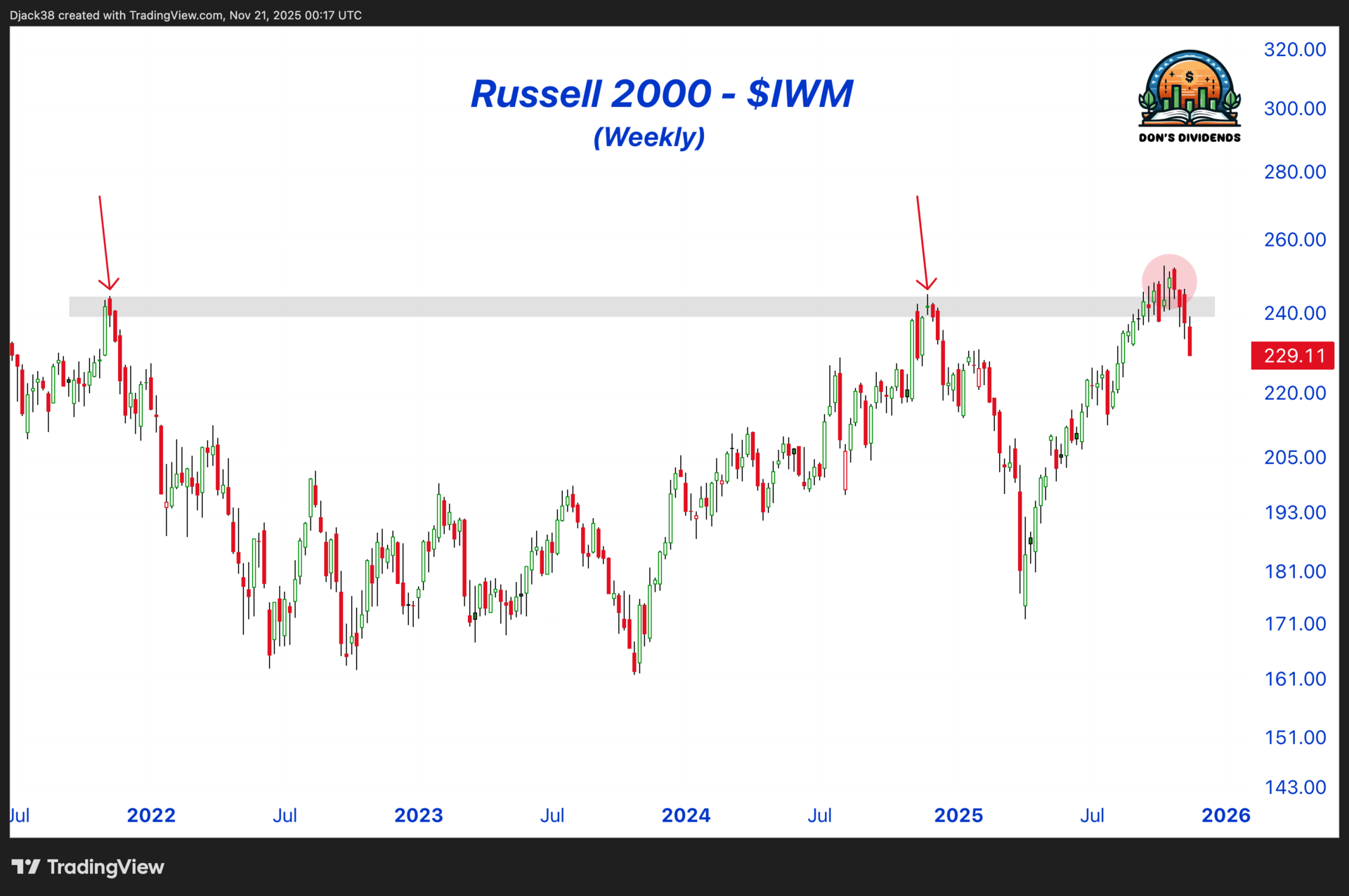 With these two charts being failed breakouts, there has been more “selling the rip” versus the typical “buy the dip” bull market mindset.